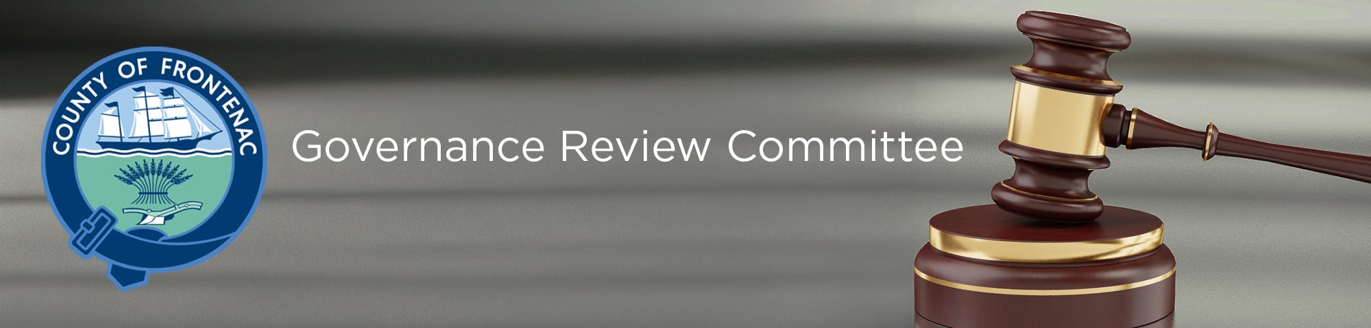 The County of Frontenac has established a Governance Review Committee to carry out a review of its governance by-laws and policies. These by-laws dictate such things as the structure of Council Meetings, how decisions are made, steps taken to ensure meetings are transparent and open to the public and how citizens are able to communicate with Council on agenda items or issues in our community.
