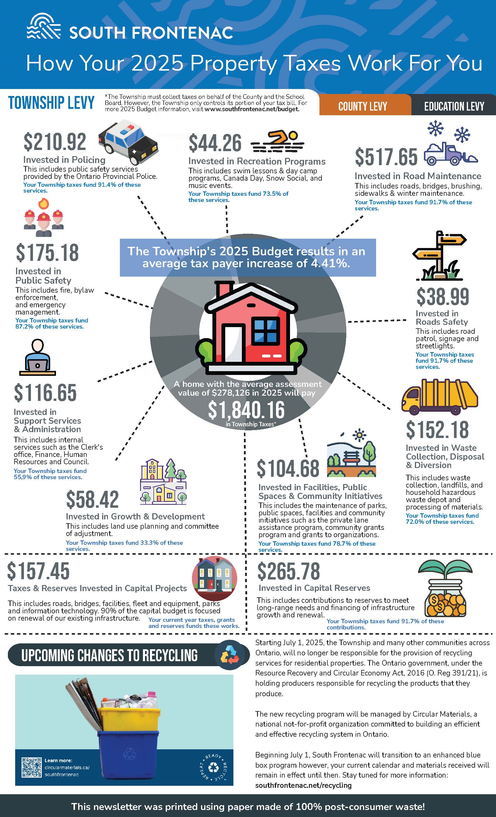 We are starting to prepare the Township’s 2026 budget. The budget is more than just dollars and cents – it impacts you through the programs and services you receive and is considered to be one of the Township's most important strategic documents, serving as a guide for everything that we do. Each time you enjoy a local park or beach, have your garbage collected, or use a recently plowed or repaired road, you are seeing your tax dollars at work.