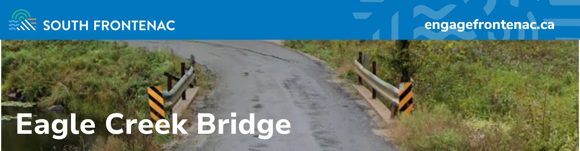 The Eagle Creek Bridge is a bridge structure located on Bob’s Lake Road approximately 2.2 km north of Buck Bay Road. The single lane structure is believed to have been built in the mid 1940’s. The existing bridge is a rigid frame concrete structure with a span of 5.4 m and a deck width of 3.9 m.